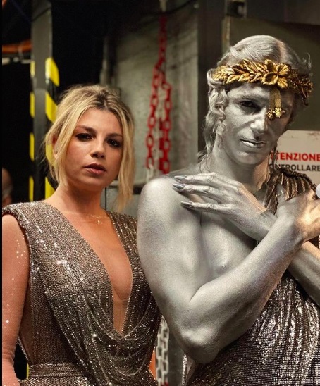 Anche per quest’anno, seppur in veste di ospite fisso, è vestito Gucci, così come Emma Marrone che lo ha accompagnato durante la terza serata.