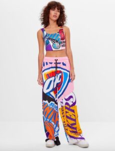 Il marchio di abbigliamento spagnolo low cost Bershka ha annunciato il 30 luglio scorso una collaborazione con la National Basketball Association, comunemente nota come NBA, la principale lega professionistica di pallacanestro degli Stati Uniti d’America e del Canada. Giacche, felpe e tute sono state decorate con i loghi dei Chicago Bulls, dei Miami Heat e dei New York Knicks.L’ispirazione viene dal mondo del basket con i capi extralarge.