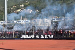 Vicinanza mostrata anche dalla Curva Sud, con uno striscione emblematico e di supporto, a dimostrazione del grande valore e rispetto degli ultras cavesi. (foto Vincenzo Amore)