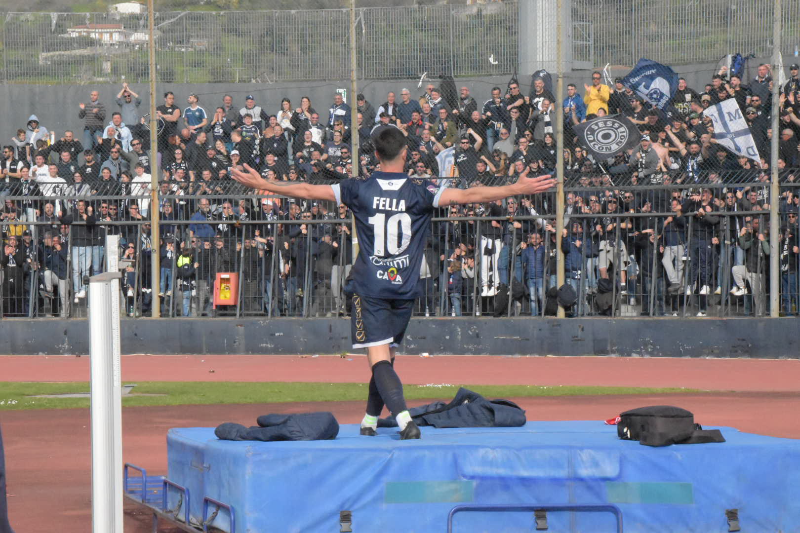 L’inerzia della gara sembra totalmente a favore degli aquilotti, ma Restaldo al minuto 76 estrae un inspiegabile rosso diretto a Piana per un intervento su Anatriello che sembrava nettamente sul pallone. Non una grande direzione di gara da parte del fischietto di Ivrea. Viene ristabilita la parità numerica ed i metelliani accusano il colpo, subendo il palleggio dei siciliani che si affacciano ora in avanti con convinzione. Lamberti all’ 82’ compie un doppio miracolo prima su Ciotti e poi su Anatriello, che da distanza ravvicinata si vedono negare il gol del vantaggio a botta sicura. Proprio al fotofinish gli aquilotti trovano il gol del vantaggio con un colpo di testa di Loreto, servito da un cross perfetto di Chiricó, il migliore in campo dei suoi insieme a Lamberti. Secondo giallo ed espulsione per mister Maiuri, che corre sotto la curva ad esultare coi suoi e viene punito dal direttore di gara. Gli aquilotti non riescono a chiudere la gara in due contropiedi nei minuti finali, nei quali Sorrentino ha sbagliato la scelta finale: nella prima occasione non passa la palla a Chiricó tutto solo, mentre nella seconda, a tempo scaduto, sceglie l’azione personale tentando un tiro che conosce Ujkaj. Stavolta non c’è spazio per i rimpianti, la gara termina con la meritatissima vittoria degli aquilotti. Pubblico di casa in festa, per una grande vittoria dal sapore di playoff.
