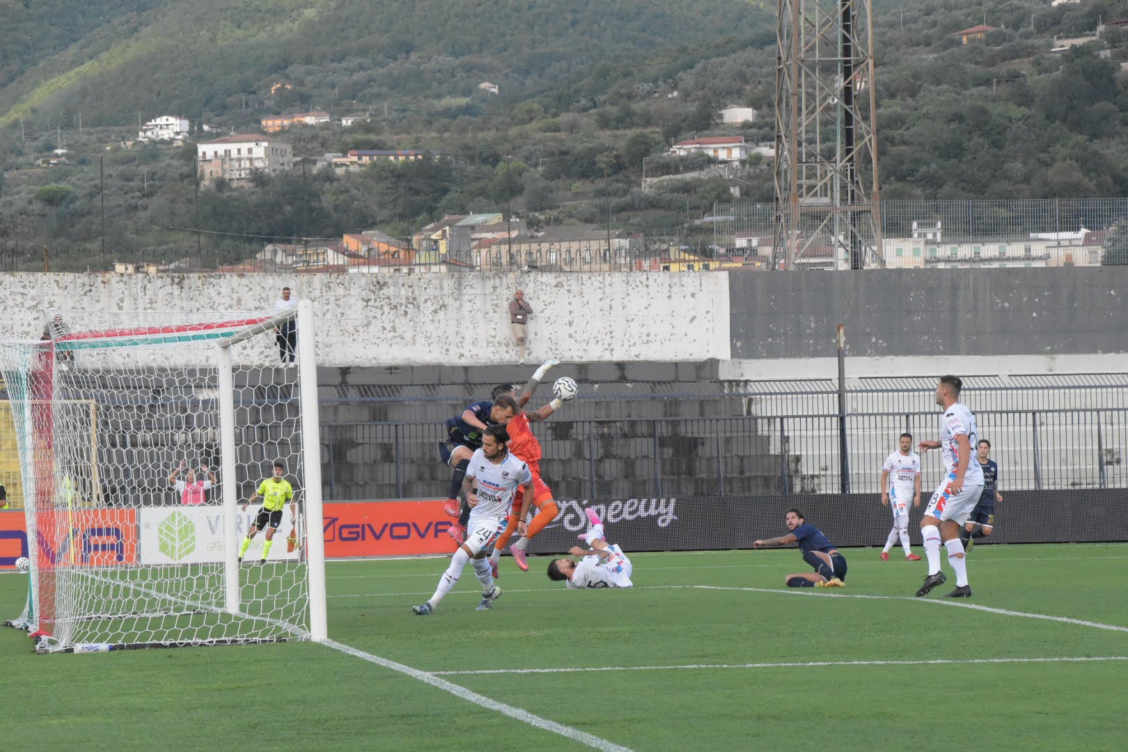 La seconda frazione inizia subito col botto: gomitata di Celli ai danni di Diarrassouba, con Prosperi che immediatamente si gioca la card e richiama l’arbitro al monitor. Nulla di fatto: Picardi estrae solo il giallo al centrocampista del Catania e il mister aquilotto, pertanto, perde la card. Nell’azione successiva, è stavolta Toscano a chiamare il direttore di gara alla revisione FVS ma, anche in questo caso, la carta viene ritirata in quanto non sono state riscontrate irregolarità. Al 54’ arriva l’incursione vincente dei rossoblu: Donnarumma mette in mezzo e trova Jimenez, ma il tiro viene murato dalla difesa biancoblu che, tuttavia, non riesce colpevolmente a rinviare. Sul pallone si avventa Forte che, con un sinistro potente e preciso, trafigge Boffelli. La Cavese accusa il colpo e la gara si mette in discesa per la formazione di Toscano: Donnarumma di testa impegna Boffelli in una grande parata, ma poco dopo Diarrasouba atterra Cicerelli in area. A nulla serve la card di Prosperi: l’arbitro conferma la sua decisione anche dopo la revisione video. Sul dischetto si presenta il numero 10 etneo, ma Boffelli gli nega il raddoppio superandosi in una parata sensazionale che tiene in partita i suoi. Il portiere classe 2004 si tuffa come un gatto e toglie il pallone dall’angolino sinistro, respingendo in calcio d’angolo. Nonostante l’episodio favorevole, l’inerzia della gara non cambia.