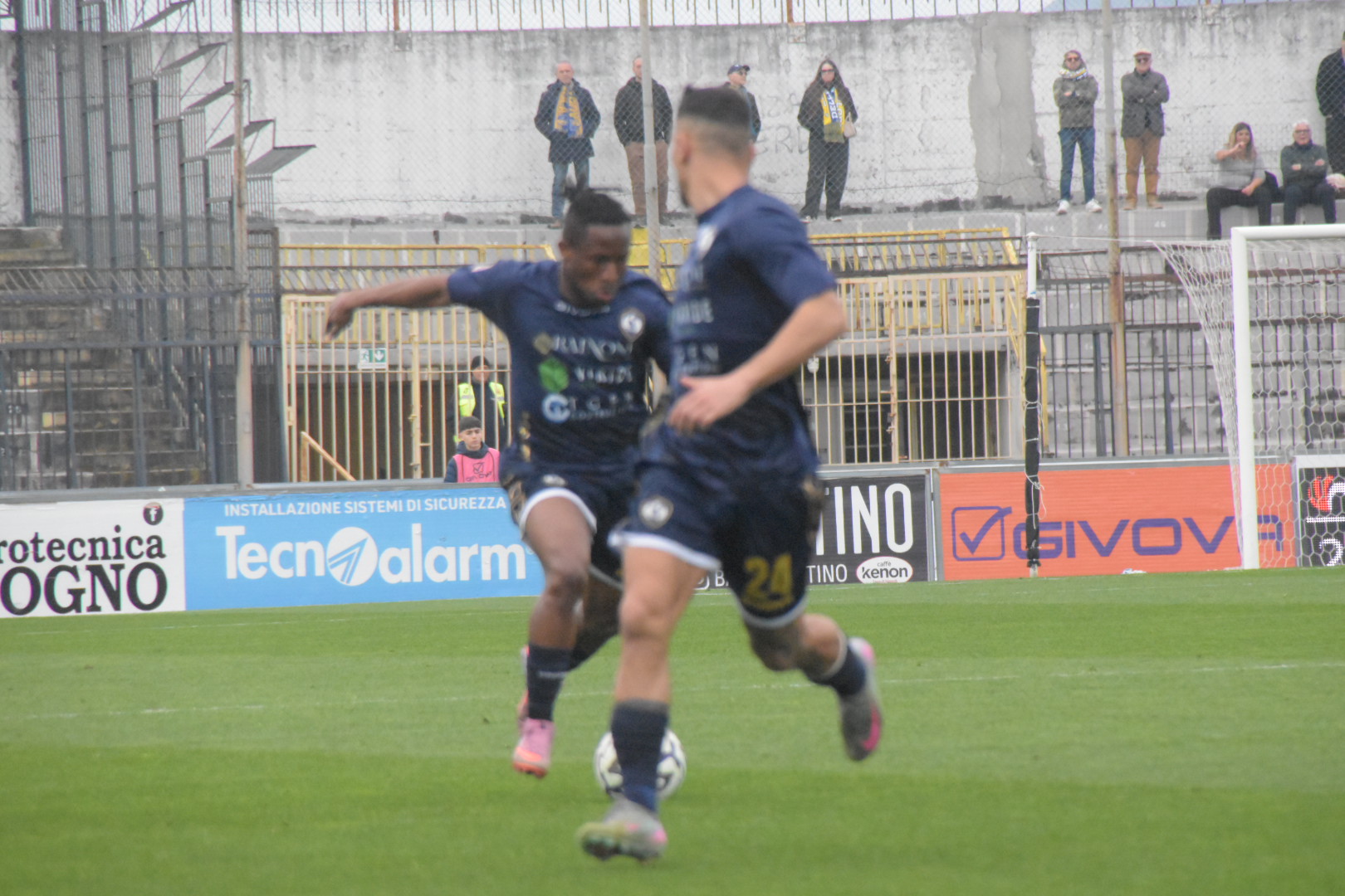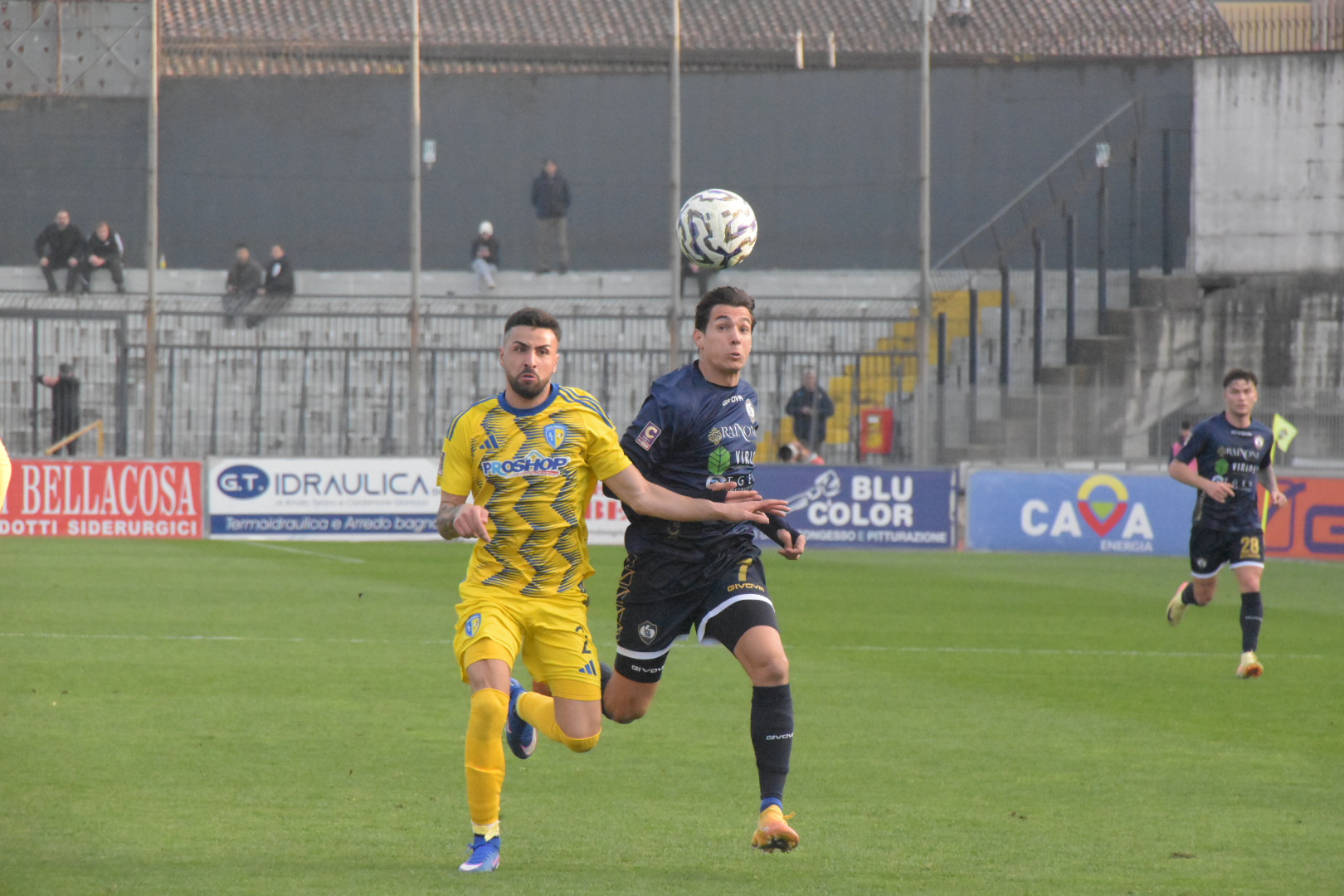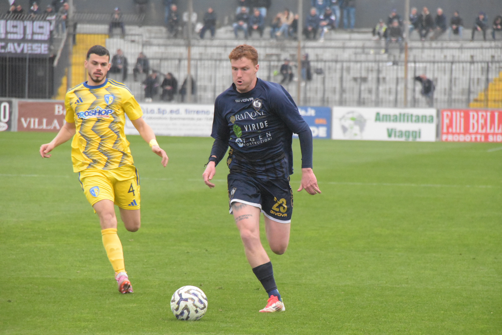 Partita bloccata nei primi venti minuti di gara, con le due difese attente a non concedere varchi pericolosi agli avversari. La prima azione pericolosa è del Cerignola al minuto 19, con Russo che imbecca Gambale con un cross preciso, ma il colpo di testa del numero 9 gialloblu finisce di poco alto. Il primo tiro della Cavese arriva solo al 29’, con una girata al volo di Gudjohnsen che finisce però a lato. Non un bel match in questa prima frazione, in cui l’accortezza e la noia hanno regnato sovrane.