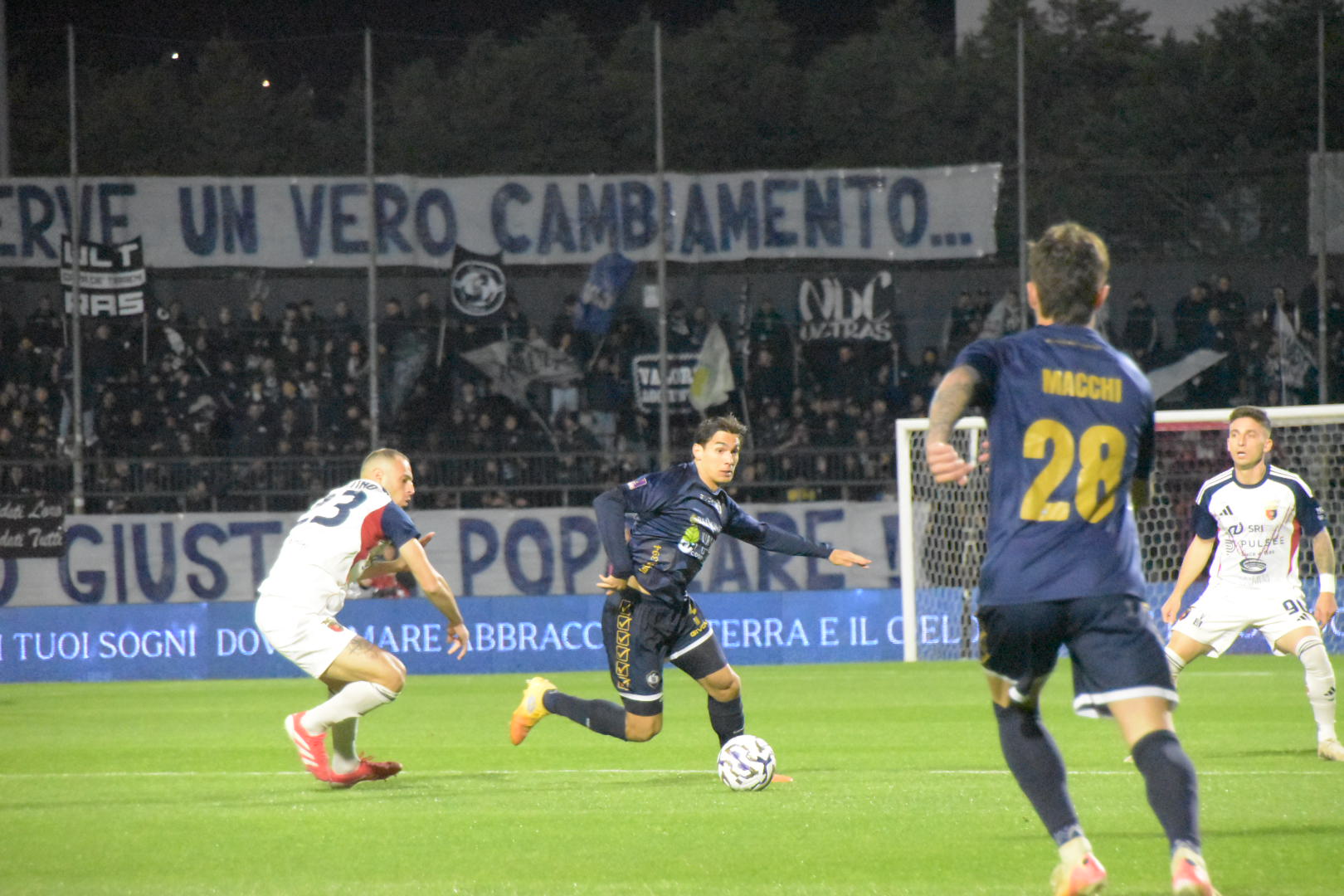 Inutili gli ingressi di Fella, Ubaldi e Gudjohnsen: Cavese remissiva e senza idee in questo secondo tempo, e ciò costa una sconfitta casalinga pesante che non le consente di fare lo scatto salvezza decisivo e, soprattutto, la costringe a restare ancora in bilico con appena tre punti di vantaggio ( virtualmente quattro, considerando lo scontro diretto a favore) sul Picerno in zona playout. Momento completamente opposto invece per i rossoblu, che trovano la quarta vittoria nelle ultime cinque gare e proseguono il proprio cammino, in un campionato che li ha visti sempre protagonisti nelle posizioni alte della classifica in questa stagione. Proprio come all’andata, la squadra di Coppitelli è stata abile nel colpire gli aquilotti al momento giusto, sfruttando un blackout inspiegabile al rientro in campo nella seconda frazione. Un passo indietro deludente sul piano della prestazione da parte di tutti, col solo Macchi in grado di tenere alta la bandiera e non mollare di un centimetro. Tanti rimpianti per le occasioni non sfruttate nella prima frazione, soprattutto quella di Minaj: il solito canovaccio delle gare dei blufoncè, puniti spesso in stagione dalla leziosità e dalla scarsa lucidità sottoporta. Secondo passo indietro di fila dopo quello contro il Foggia, sempre al Lamberti, altra partita in cui la squadra di Prosperi non è stata sufficientemente cinica venendo meno sul più bello. Servirà tutt’altro atteggiamento nelle ultime gare per centrare l’obiettivo: fortunatamente mercoledì si torna già in campo a Caravaggio nello scontro diretto contro l’Atalanta U23, occasione giusta per reagire e riscattarsi.
