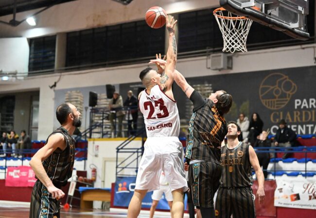 La ITSVIL Salerno Basket compie un’autentica impresa. La squadra cara al presidente Carlo Mancuso mette al tappeto la Mamba Gragnano. 65-39 il punteggio finale in favore del quintetto guidato da coach Daniele Serrelli che si aggiudica la gara valida per la 7^ giornata del girone di ritorno del campionato di Divisione Regionale 1. Capitan Giuseppe Scolpini e soci conquistano l’intera posta in palio al cospetto della capolista del raggruppamento, infliggendole la terza sconfitta stagionale. Per i salernitani, bravi a non far entrare mai in partita i viaggianti, sfruttando le ottime percentuali di realizzazione al tiro (con 10 triple di squadra), si tratta invece della dodicesima vittoria, grazie alla quale si attestano al decimo posto solitario in classifica.
