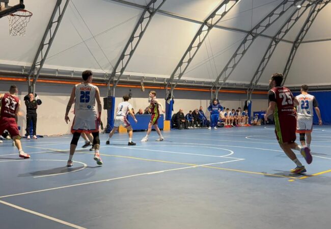 Nella gara valida per la 8^ giornata del girone di ritorno del campionato di Divisione Regionale 1, il quintetto di coach Daniele Serrelli è bravo a portarsi subito avanti nel punteggio (11-18 al termine del primo quarto). Cosi come poi a gestire la reazione dei padroni di casa. Giunti al massimo vantaggio sul 27-35, capitan Giuseppe Scolpini e soci tra la fine del secondo quarto (chiuso comunque avanti 33-35) e l’inizio della ripresa subiscono un break di 14-0 che avrebbe potuto stendere chiunque.