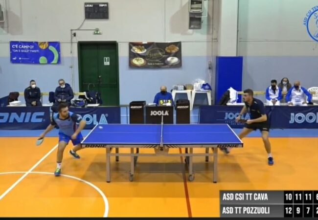 L’incontro è stato una vera battaglia, con il tavolo da gioco sempre più rovente e con azioni di gioco di grande spessore tecnico. Avvincenti tutti gli incontri, che hanno visto protagonisti gli atleti schierati in campo dalle due società. Per il TT CAVA Gammone Alesandro, Marco Palummo al suo esordio in campionato e il Rumeno Petrescu Alexandru; mentre per i TT Pozzuoli Valentino Maurizio, Banco Stefano e Morra Alessandro. I primi due incontri sono stati subito vinti dagli ospiti che con Valentino e Banco si portano sul 2 a 0, la replica non tarda a venire ed il TT Cava recupera subito portandosi sul 3 a 2 con tre vittore di seguito con Petrescu che batte Morra a seguire Gammone batte Banco e Petrescu si ripete contro Valentino ristabilendo gli equilibri e indirizzando l’incontro verso una ripresa soprattutto psicologica della squadra.