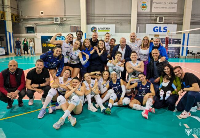 Rossin non perdona ma sul 22-19, le ospiti infilano cinque punti e portano il match al tie break. Tra tensione ed equilibrio, il quinto set è un susseguirsi di emozioni con la Santoro Creative Hub che arriva a cambiare campo avanti 8-6. Cutrofiano resta in scia e si gioca punto a punto. Battaglia firma con una magia il 12-11 prima che Cutrofiano infili tre punti di fila, conquistando due match point: il primo lo annulla Eleonora Sorrentino con un perentorio primo tempo, il secondo Valdes. Poi la cubana mette a terra il pallone del 15-14 con il muro di Sorrentino che vale il 16-14 e la storica salvezza, con due turni di anticipo, per la Santoro Creative Hub Salerno.