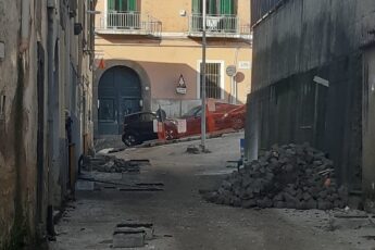 I lavori interessano l’abbattimento di un muro in via Santoriello, funzionale al completamento dell’area esterna del Palaeventi